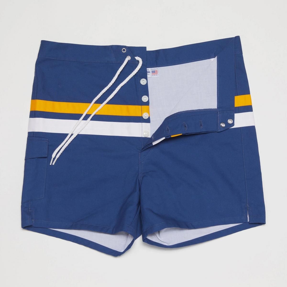 Inspired by 60s Hawaiian Holiday Trunks. These cotton trunks give you a classic feel in the water. Featuring dual stripes, a wax pocket on the right leg, and a button fly with urea buttons. Totally classic, right?