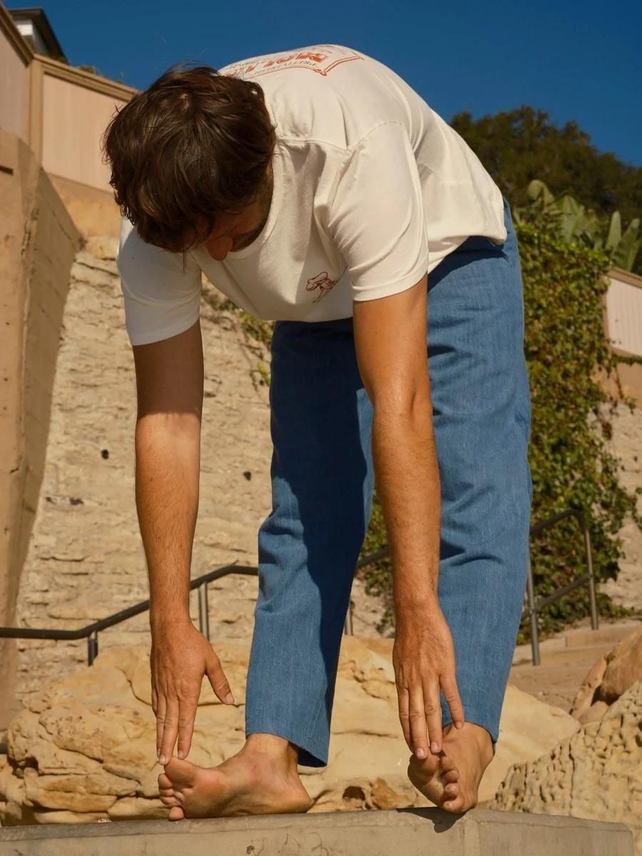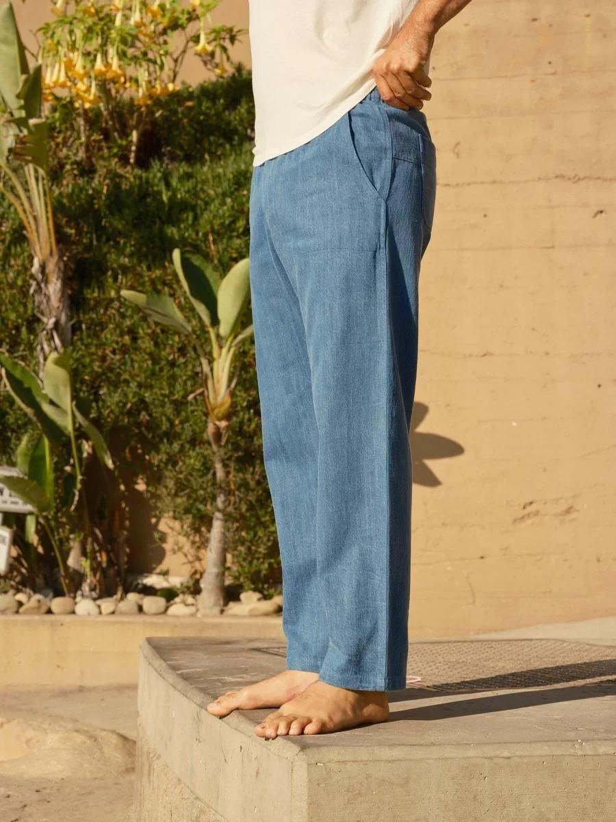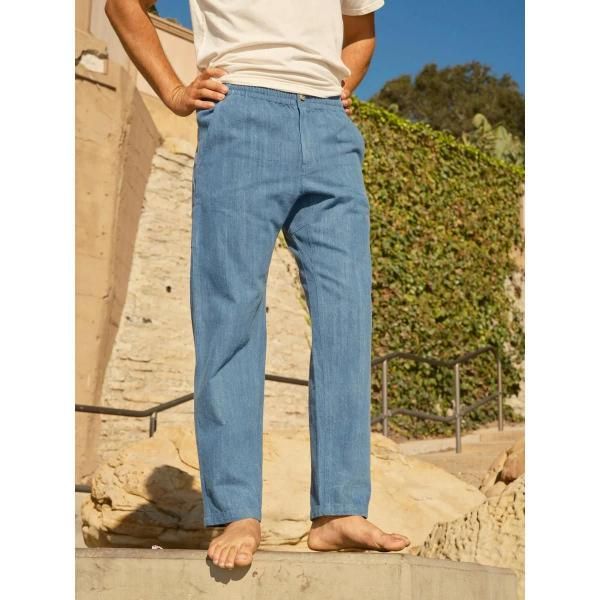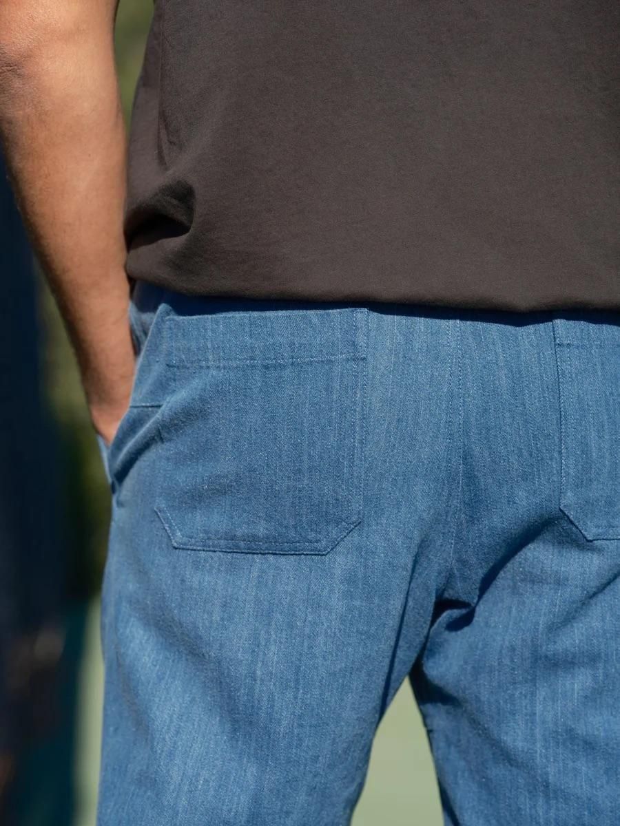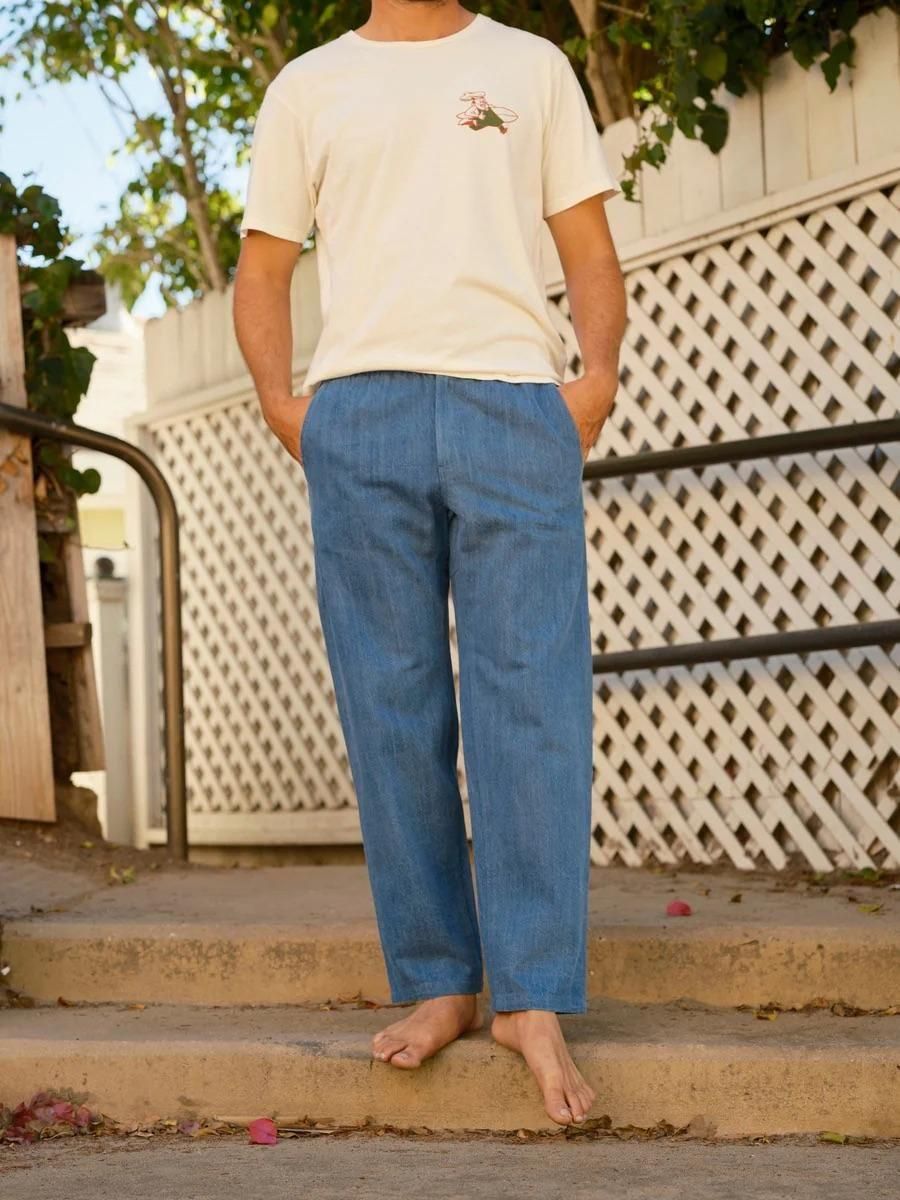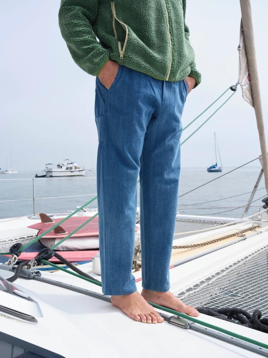 Denim doesn't need to be stiff and uncomfortable. Featuring an elastic waistband, pockets aplenty, and relaxed fit with a slightly tapered leg, these pants are for live-in comfort.