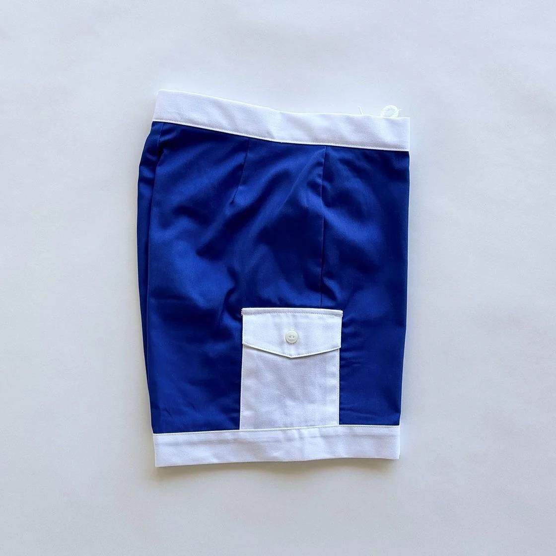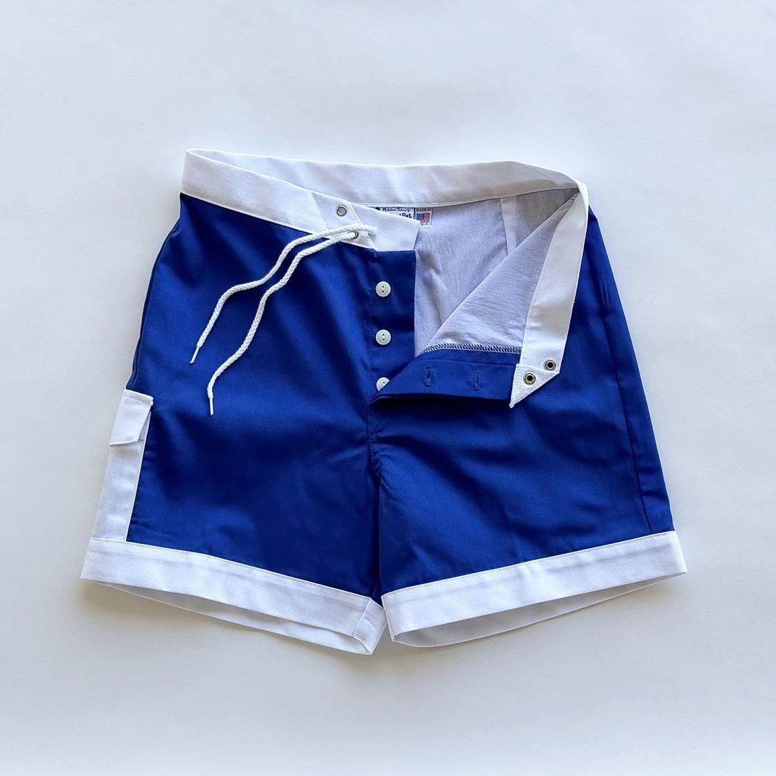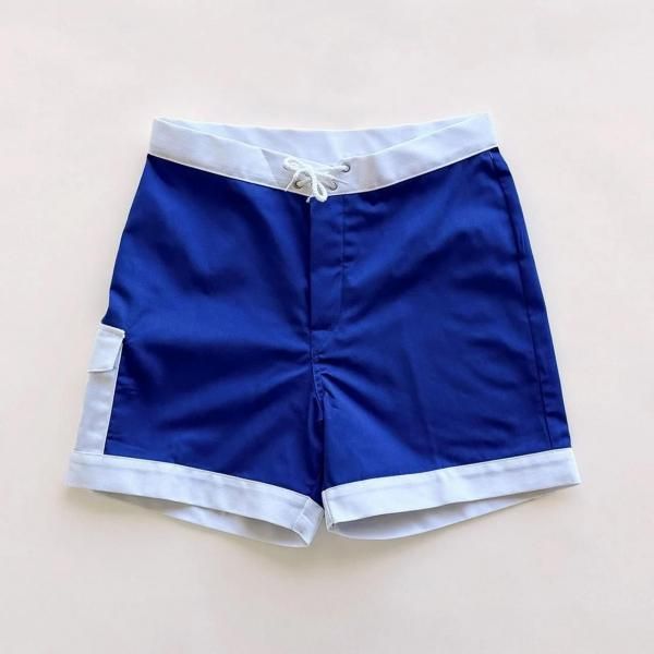 Another Jazzy trunks from YR! These one of a kind pairs are replication of Hawaiian Holidays' trunks of early 60s. Made of poly/cotton fabric, and fully lined with 100% cotton. Traditional yet super unique and stylish design with a nice bold white flap pocket at lower bottom, and contrasting white stripe on waistband and leg openings. Button-fly front closure. Pre-washed so no shrinkage.